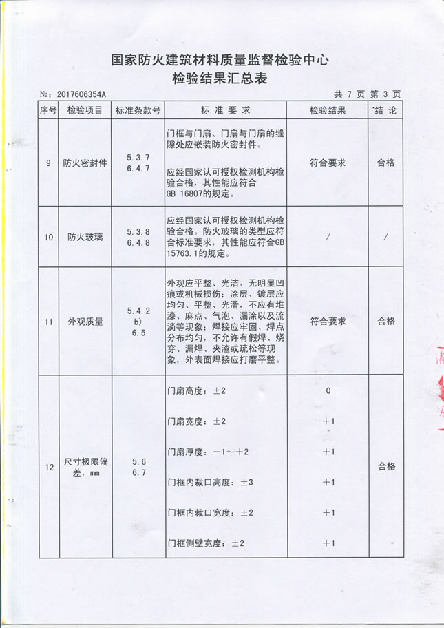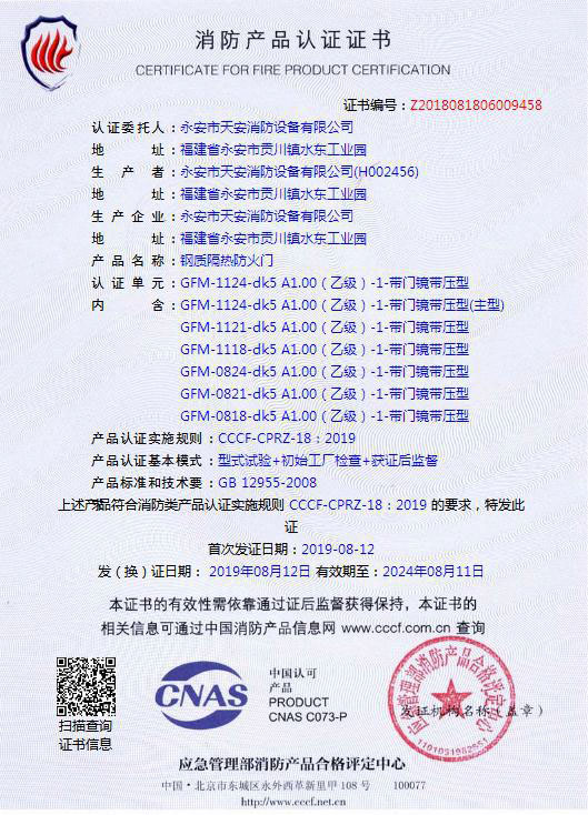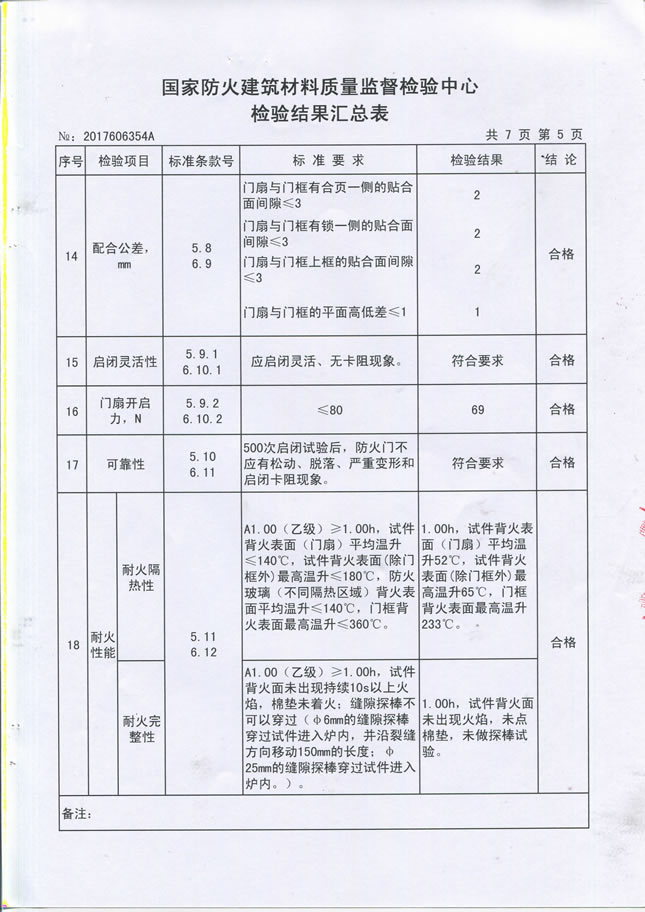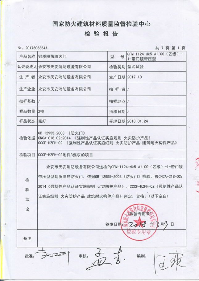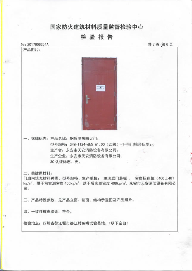 1124乙级-70- 防火入户门检验报告及认证证书